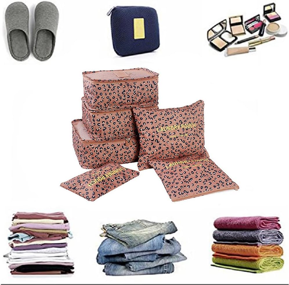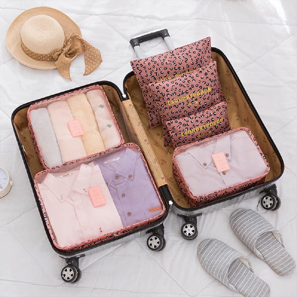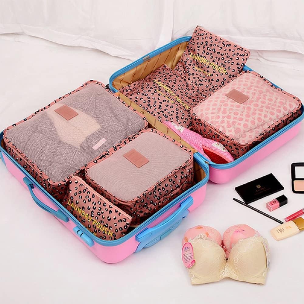 Introducing the Fxkoolr Packing Cubes 6 Set Travel Accessories, the ultimate solution to keeping your luggage organized and stylish while on the go. Say goodbye to the chaos of packing and hello to effortless organization with these vibrant Pink Leopard packing cubes.